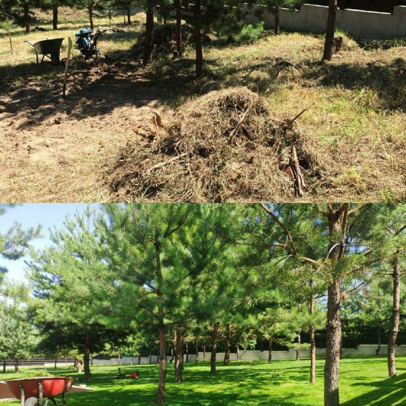 - Удаление старой растительности и подготовка площадки.